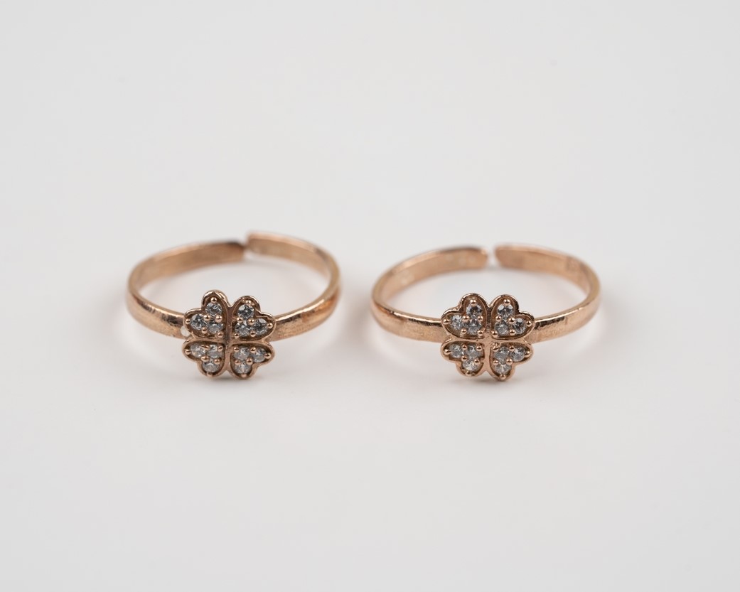 Pair of 2, 925 Pure Silver Rose Gold Plated Toe Rings.