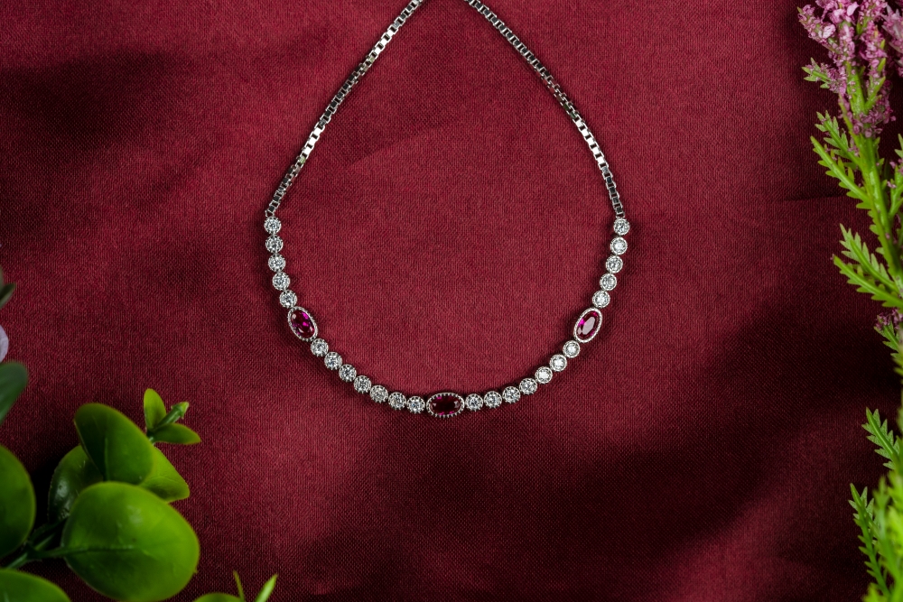 925 Pure Silver Rhodium plated Bracelet, studded with stones.