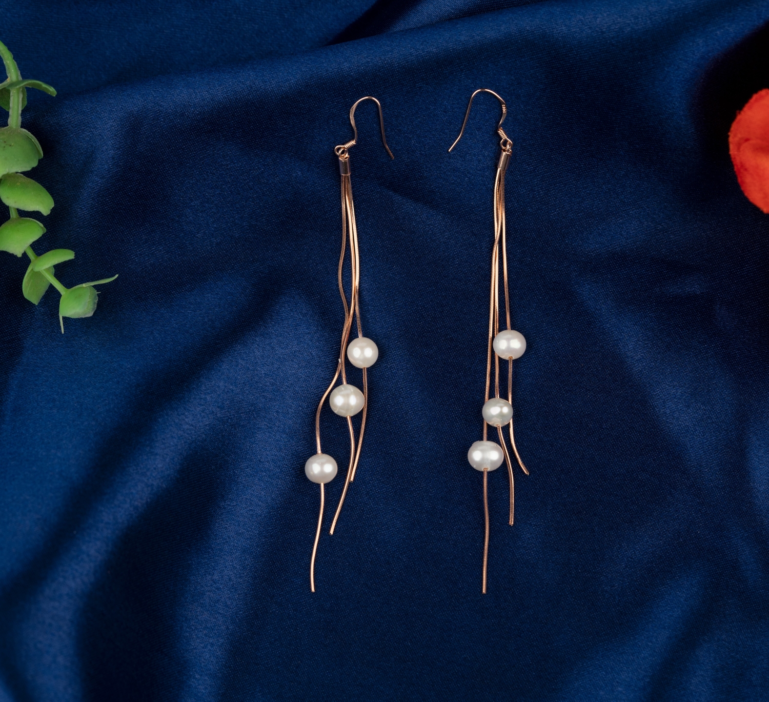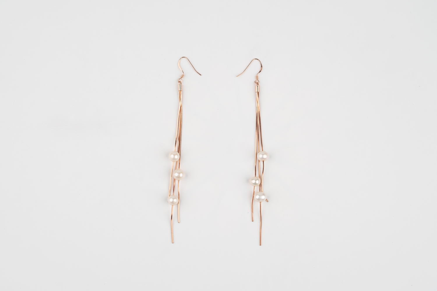 925 pure silver rose gold plated String of Pearls Earrings.